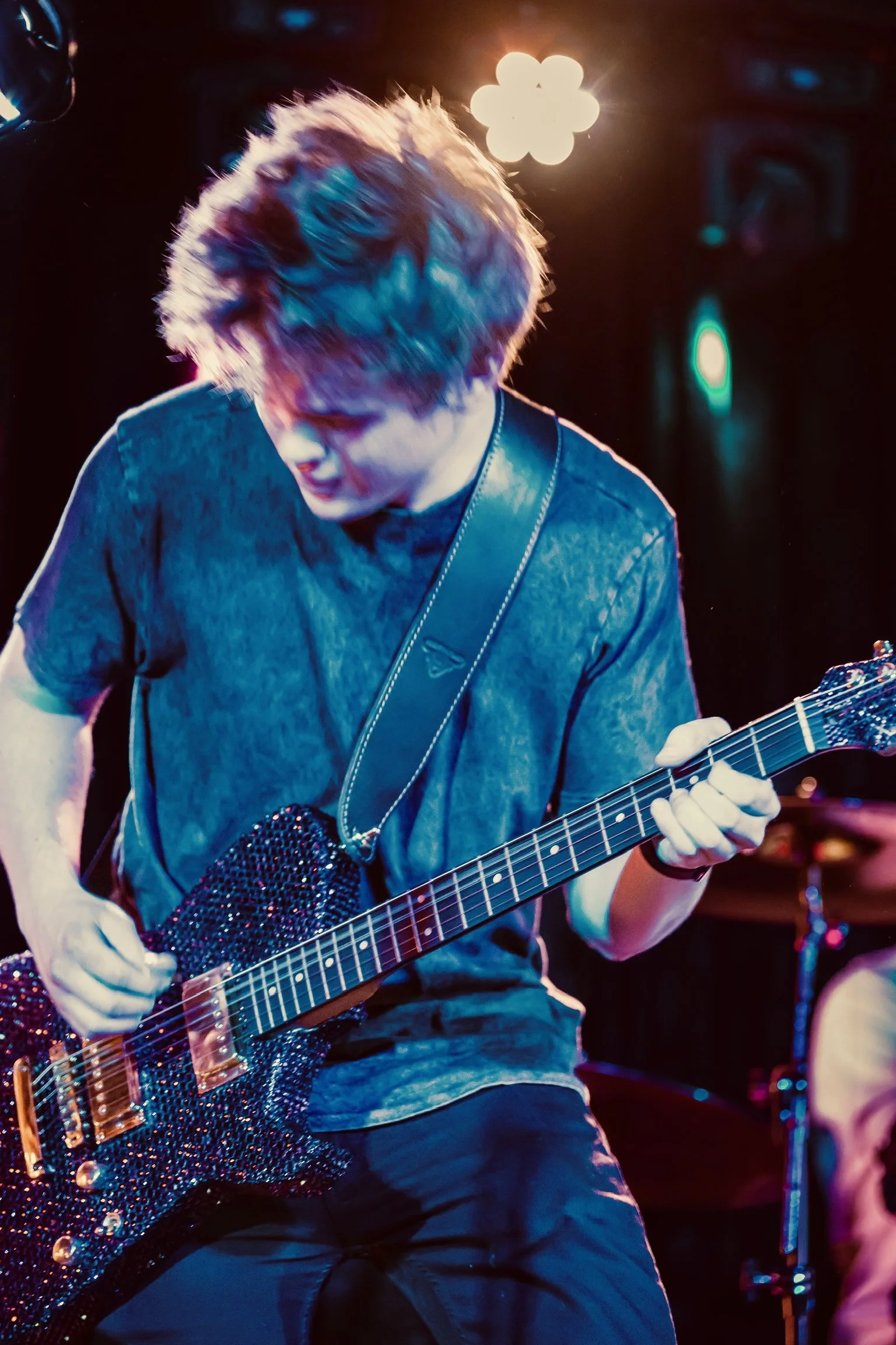Xander’s love for guitar started from being inspired by bands like Muse, especially their huge live sound and creative approach to performance. That interest grew into a deeper focus on tone, gear, and building guitars from scratch, which now plays a big role in how he approaches Camryn’s music.